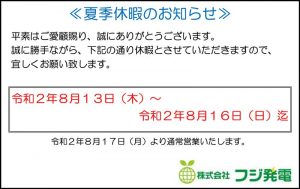 太陽光発電状況(2020年8月)更新のお知らせ